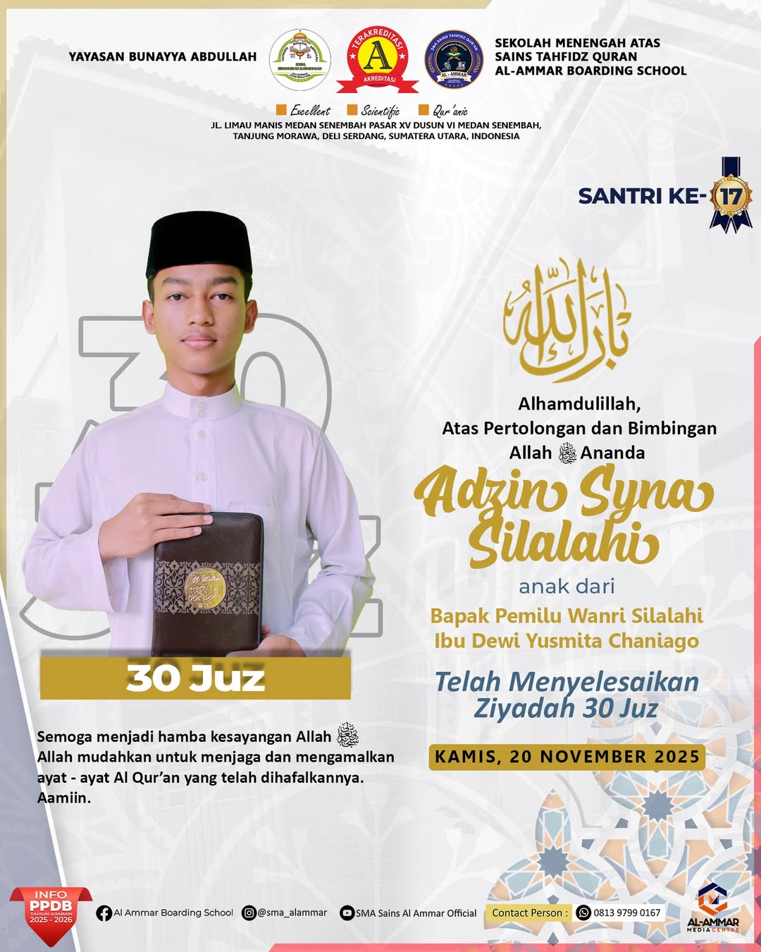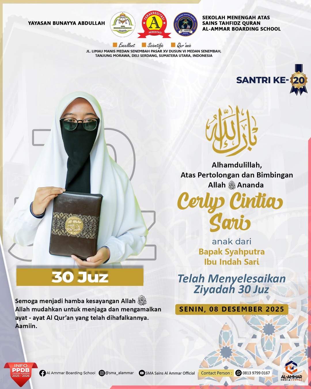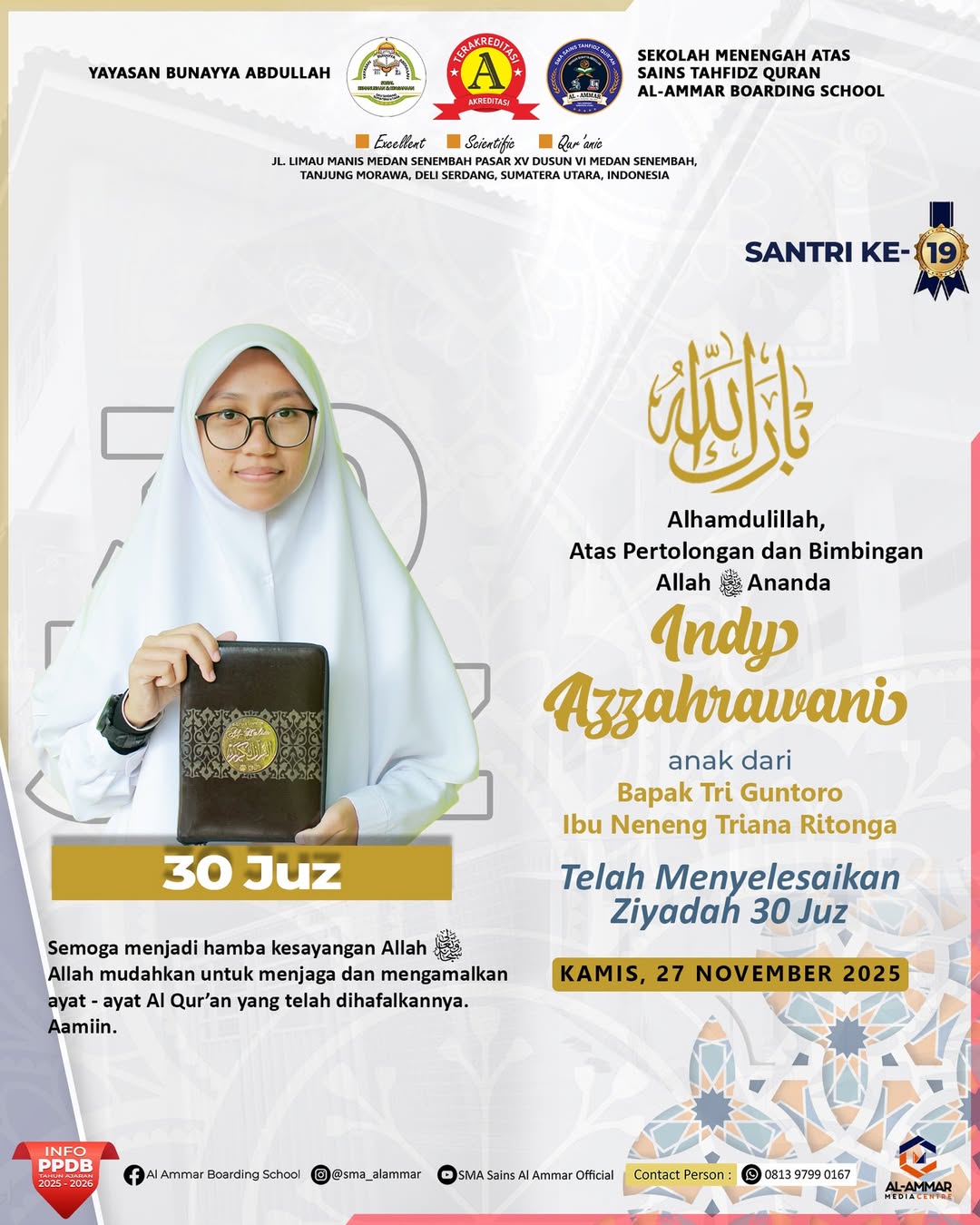 Tahniah wa Barakallah Selamat & Sukses kepada Santri Sekolah Menengah Atas Sains Tahfidz Qur’an Al-Ammar Boarding School Tanjung Morawa, Deli…